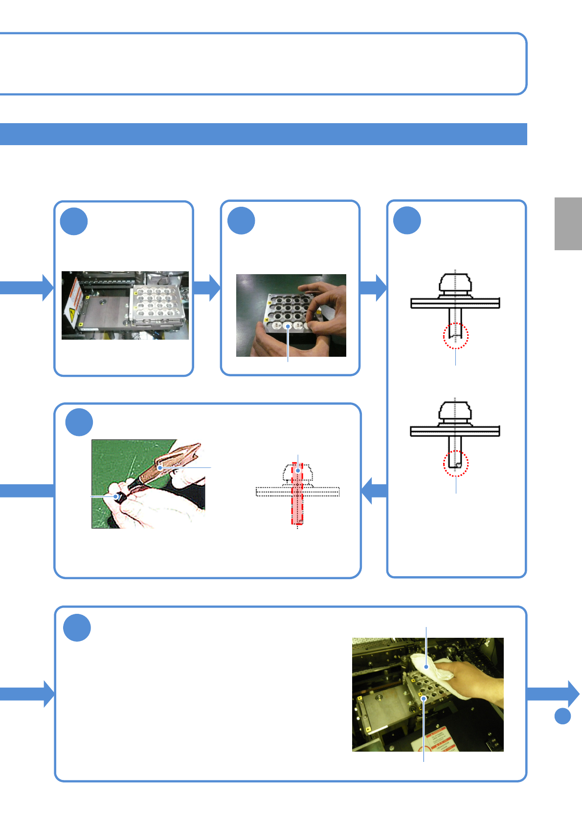 Tool used: Lint free cloth, air blow gun, swabs, nozzle cleaning pin φ0.4(KXF0DYHTA00), nozzle cleaning pin