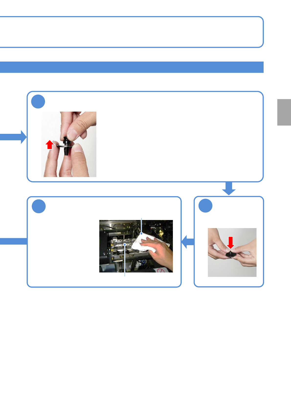 ●Insert a nozzle cleaning pin and push lodgment out of the nozzle upper