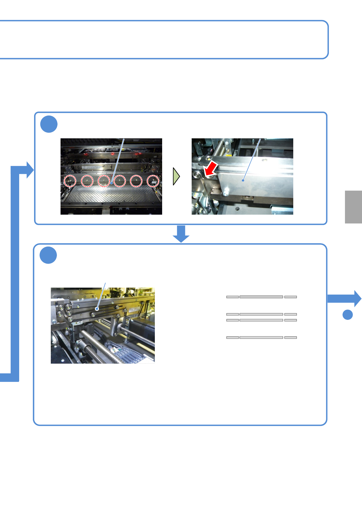 NPM- TT2 EJM1EE-MB -12M-04 R eplacing the tr ansfer belt of the PCB tr ansfer con v eyor 2 Maintenance 12-1 12-1 -3 9 A B ● Loosen screws of the tensio n pulley in advance. (Three on each) Tension pulley Tension pulley T…