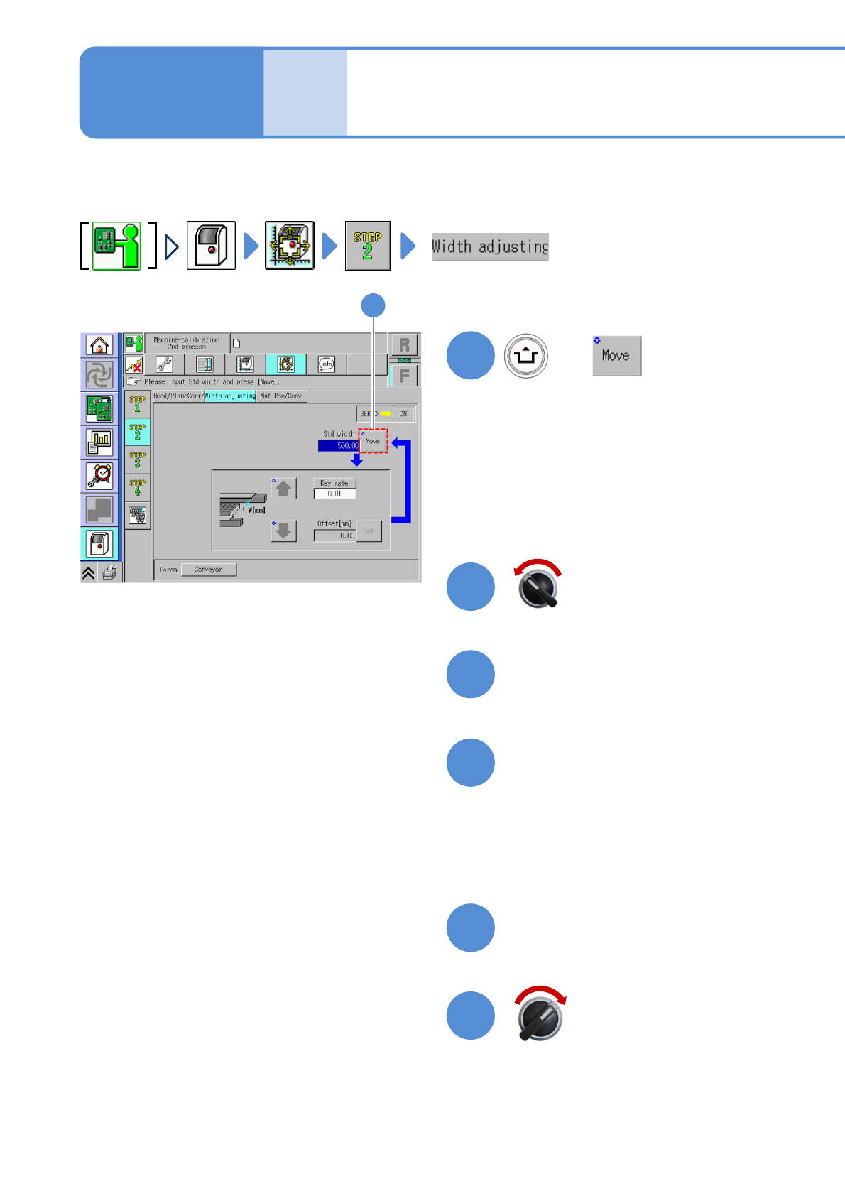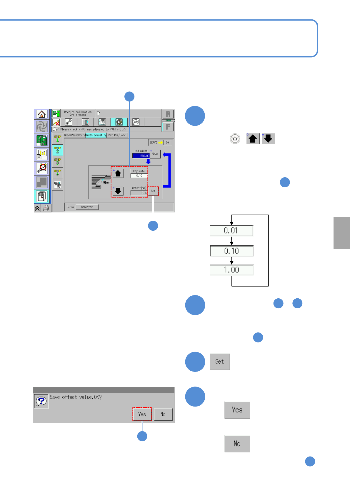 NPM- TT2 EJ M1EE-MB-13M-0 2 W idth adjustment 1 4 3 2 + Open the safety cover Measure the conveyor width with a vernier caliper 5 6 Close the safety cover 1 13-5 -1 Explains the method for calibrating the width adjustmen…