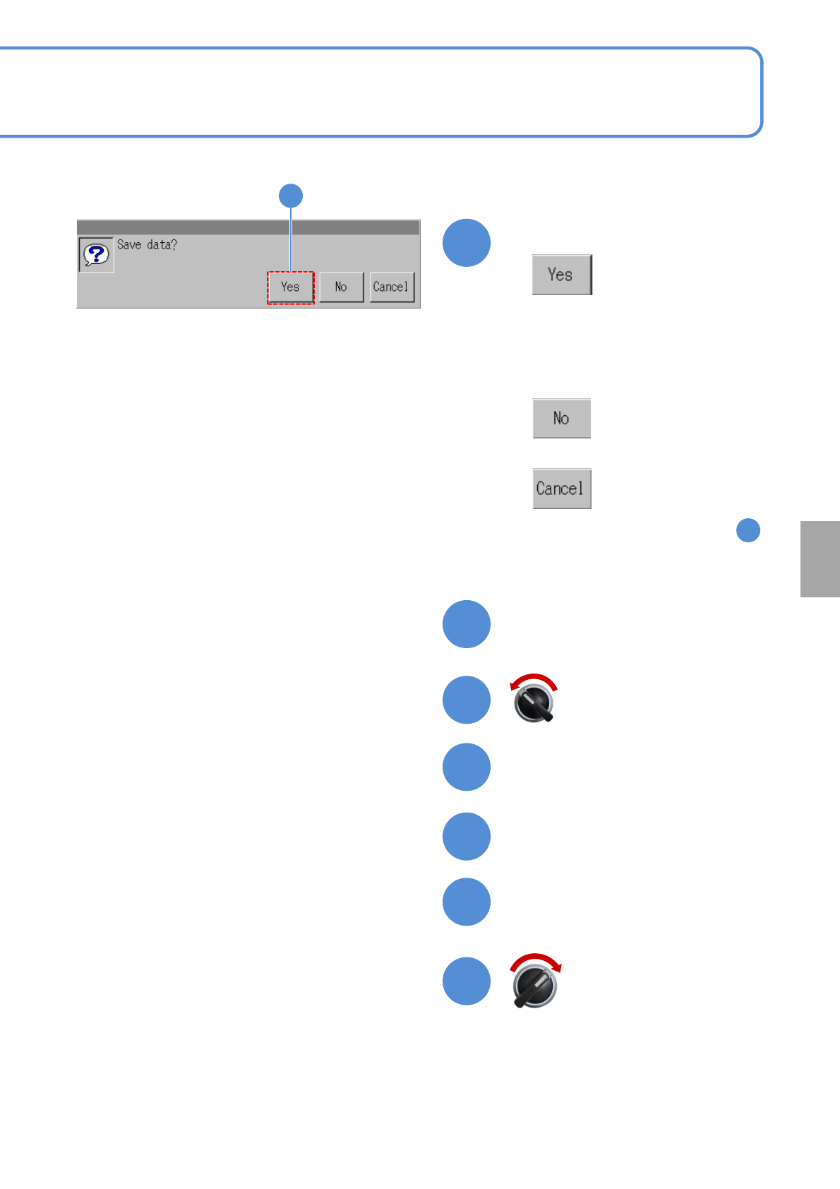 NPM- TT2 EJM1EE-MB-13 M-02 13-6 -4 Calibration Confirm the message (The heigh t and the stop position measurement data is saved) ● When you do not save the data ● To cancel (The screen remains as it is in ) Open the safe…