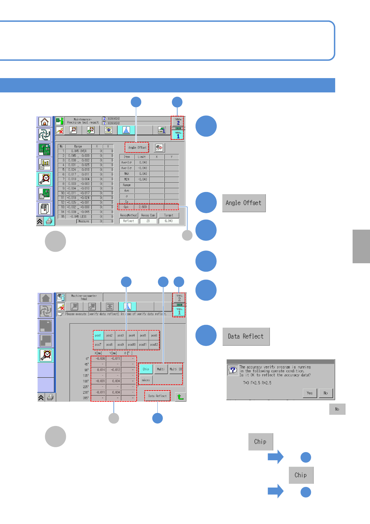 NPM- TT2 EJ M1EE-MB-13M-0 2 1 Accuracy verifica- tion 2 (Automatic r un end s) + 13-15-2 -5 Detailed pr ocess 3 ● Chip component 0 .040 mm Odd form com ponent 0.030 mm 3 4 5 Switch it w ith ■ When you do not end Maintena…