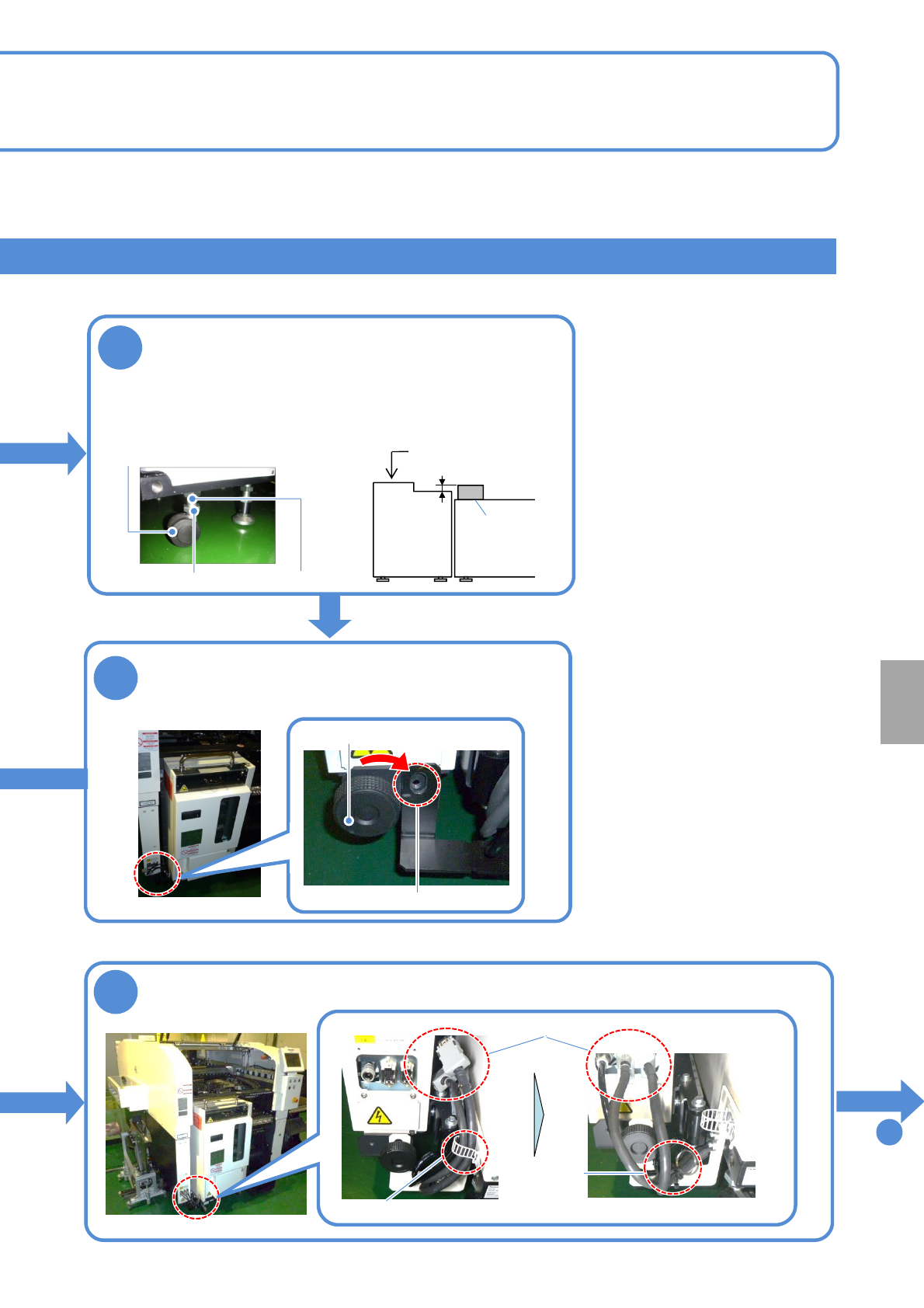NPM- TT2 EJM1EE-MB-14 M-02 14-8 -4 Installation 4 Adjust the height 1. Loose n the lock nuts. 2. Adjust the height using the adjustment nuts. 3. Tighten the lock nuts. Tray feeder Mult- recognition camera ● Adjust the he…