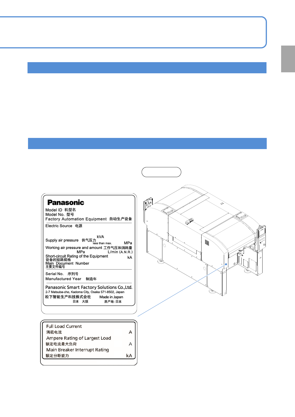 The product nameplate indicating the product name (Model ID) and serial number of the machine is affixed at