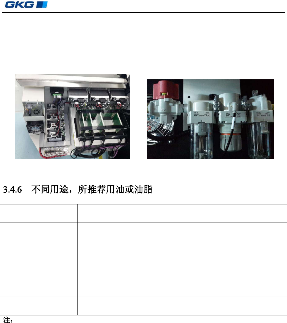 凯格精密机械有限公司 - 23 - 气路总压力: 6Kgf/ cm 2 刮刀压力: 0~10 Kgf /c m 2 网框夹紧压力: 5 Kgf/cm 2 真空吸压力: 4 Kgf/cm 2 图 3- 18 电气控制箱 图 3- 19 气动三联体 ( 带压力开关 ) GKG 使用的油脂为 Shell Grease EP No.2 用途 产品名称 制造商 一般用途 Alvani a Grease No.2 Showa Sh ell Seki…