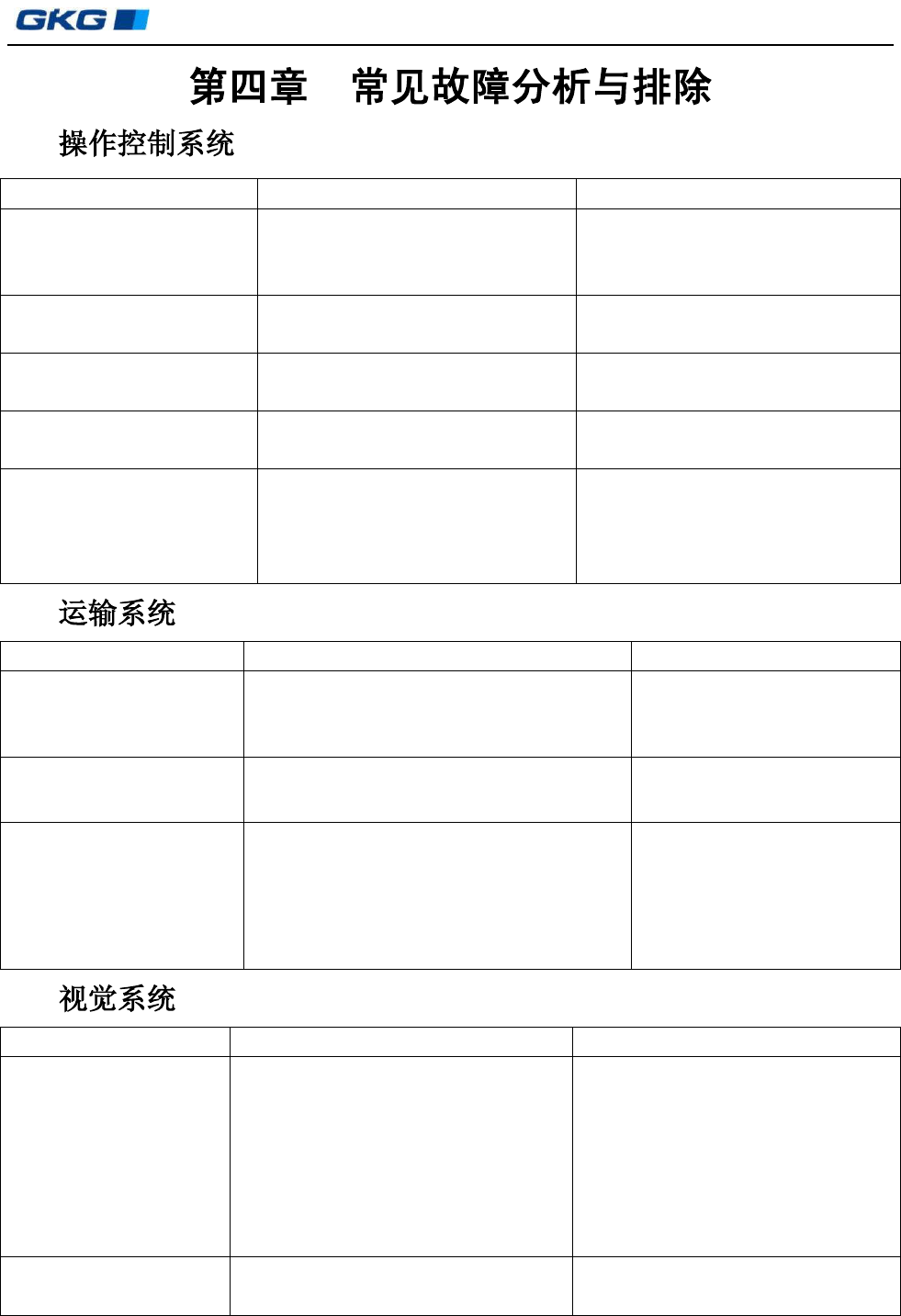 常 见 故 障 故 障 原 因 排 除 方 法