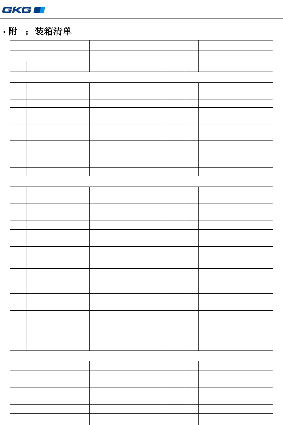名 称 规 格 / 型 号 数 量