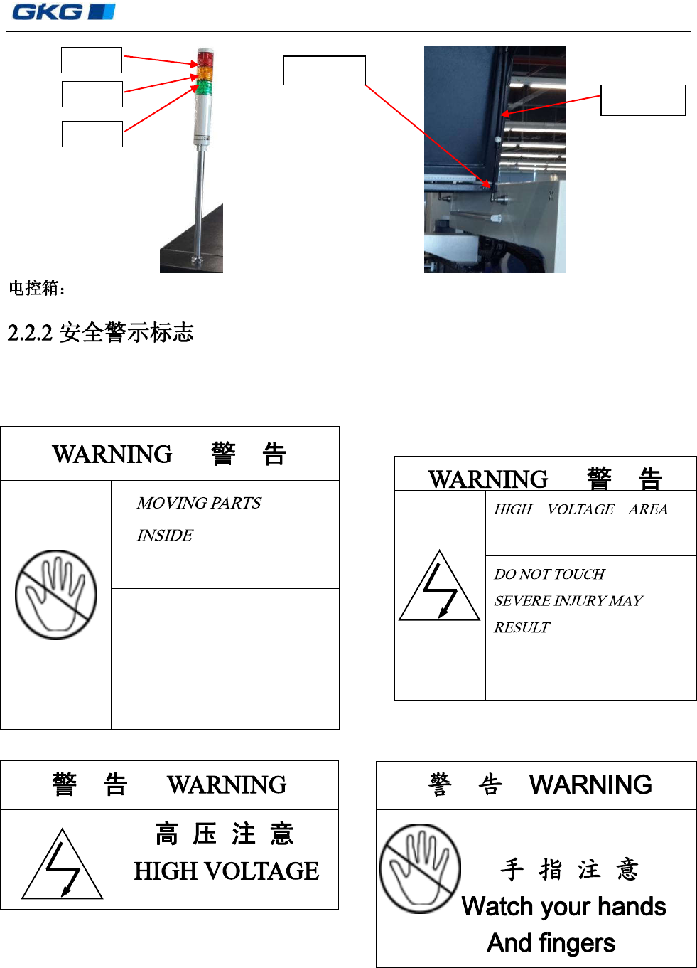 安全警示标签贴在机器不同位置以示有关人员在安装、操作或维护机器注意。本机器使