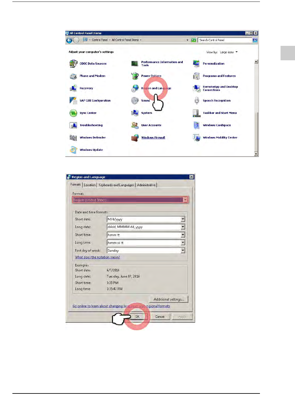 3-3 PC 配置及软件前置安装 STEP2. 选择 “Region and Langu age” 菜单 STEP3. 在 <Formats(F )> 组合框选择了 “ 中文 (zh-CN)” 后, 单击 < 确定 > 按钮