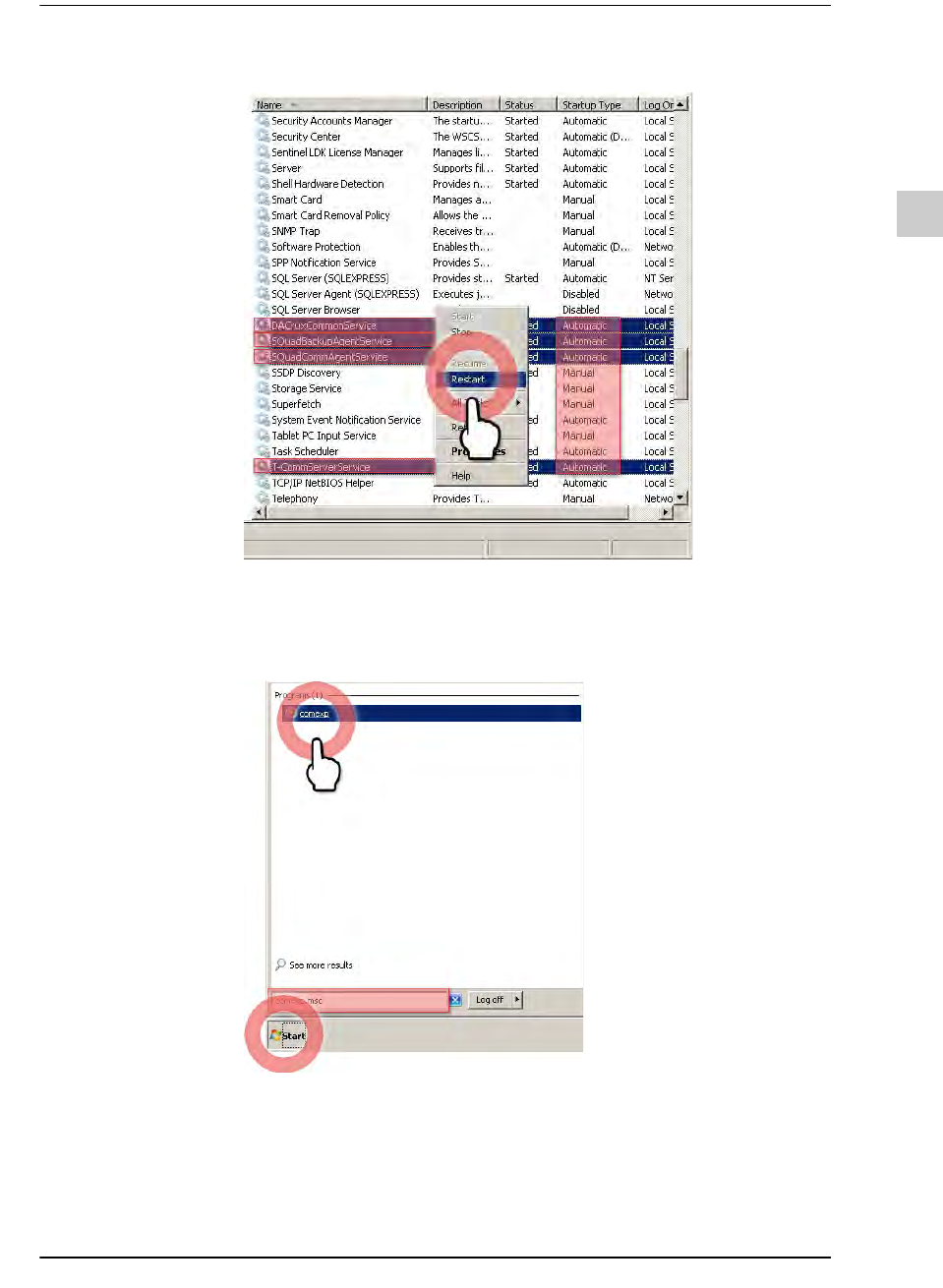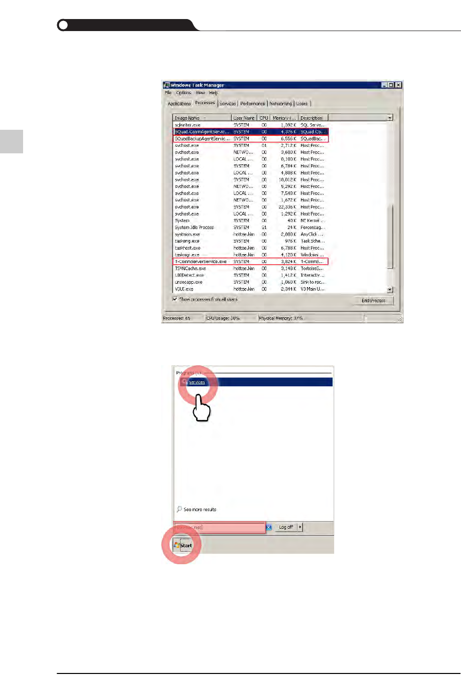 4-15 安装 T-Solution Server T -CommServerService 确认 COM + 应用程序的安装 STEP1. 单击视窗任务栏的 < 开始 > 按钮后 , 在 “ 搜索程序和文件 ” 输入 “comexp.msc” , 在搜索结果选择程序