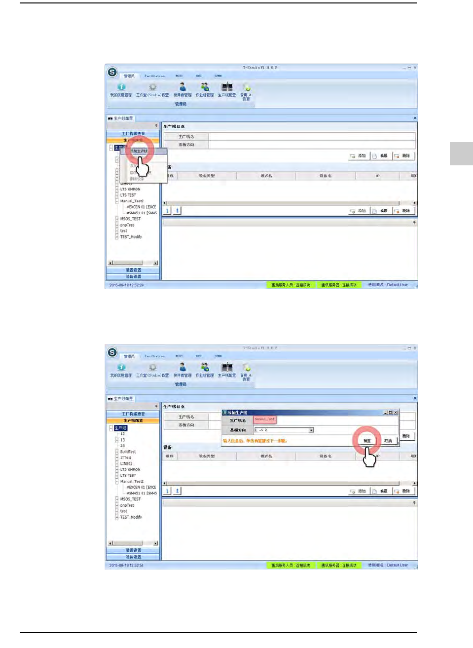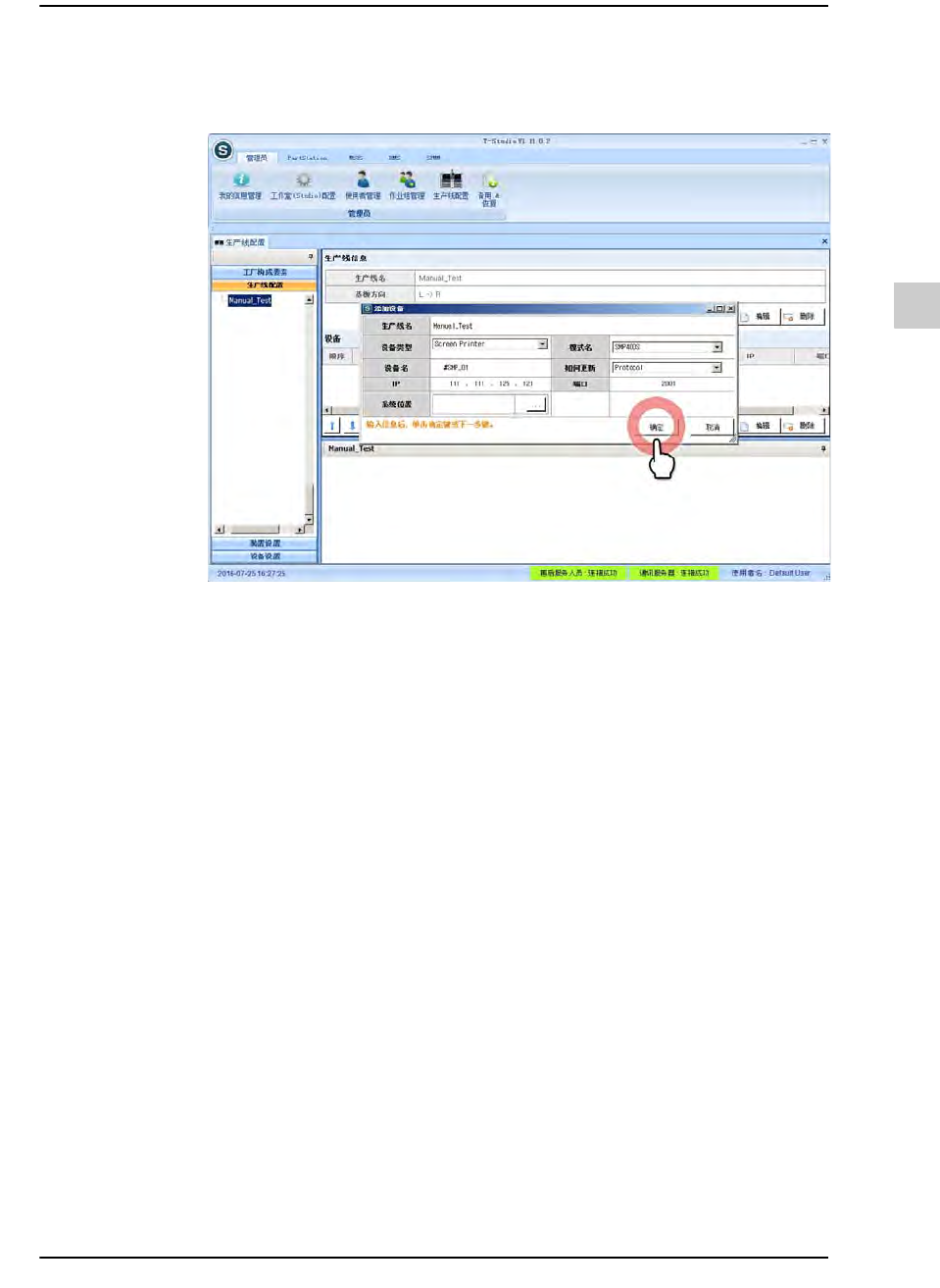 STEP3. 在<生产线名> 编辑框输入“Manual_Test”后, 单击<确定>按钮。