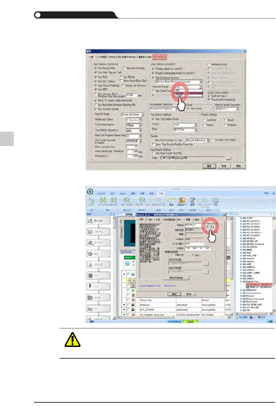 注意 如上图所示地设置需要自动变更型号的设备。否则,无法在该设
