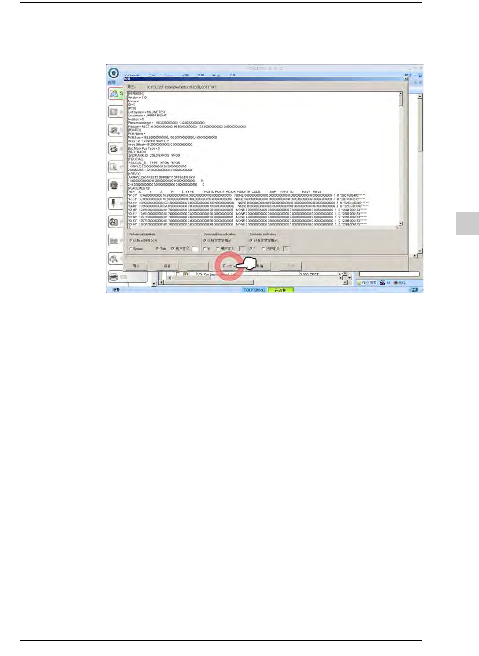 9-11 创建型号数据 STEP4. 设置 <Colum n separation> 、 <Comment line indication> 、 <Delimiter indication> 领域后, 单击 < 下一步 > 按钮 为了按照信息类型区分 TXT 文件的数据而设置分隔符 或定界符。信息类 型与表示方法会随着所设置的选 项而不同。 <Column separation&…