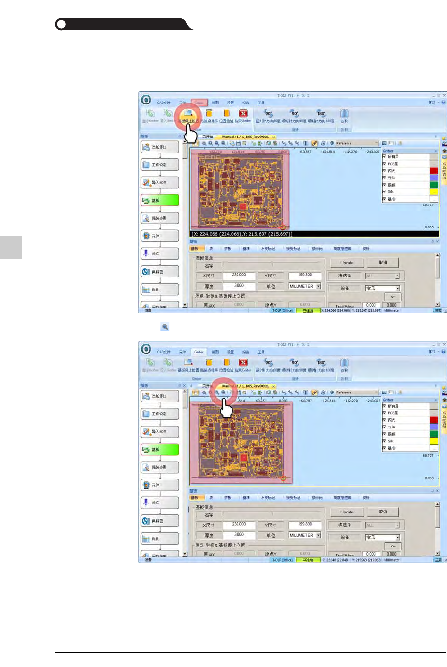 STEP5. 选择“Gerber”菜单,单击<基板停止位置>按钮后,让CAD与Gerber的基板