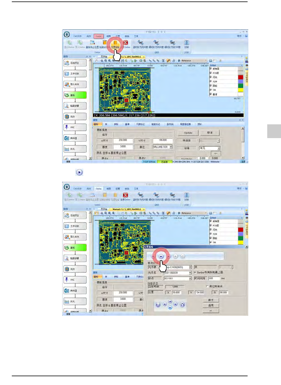 STEP4. 单击 按钮开始验证贴装点
