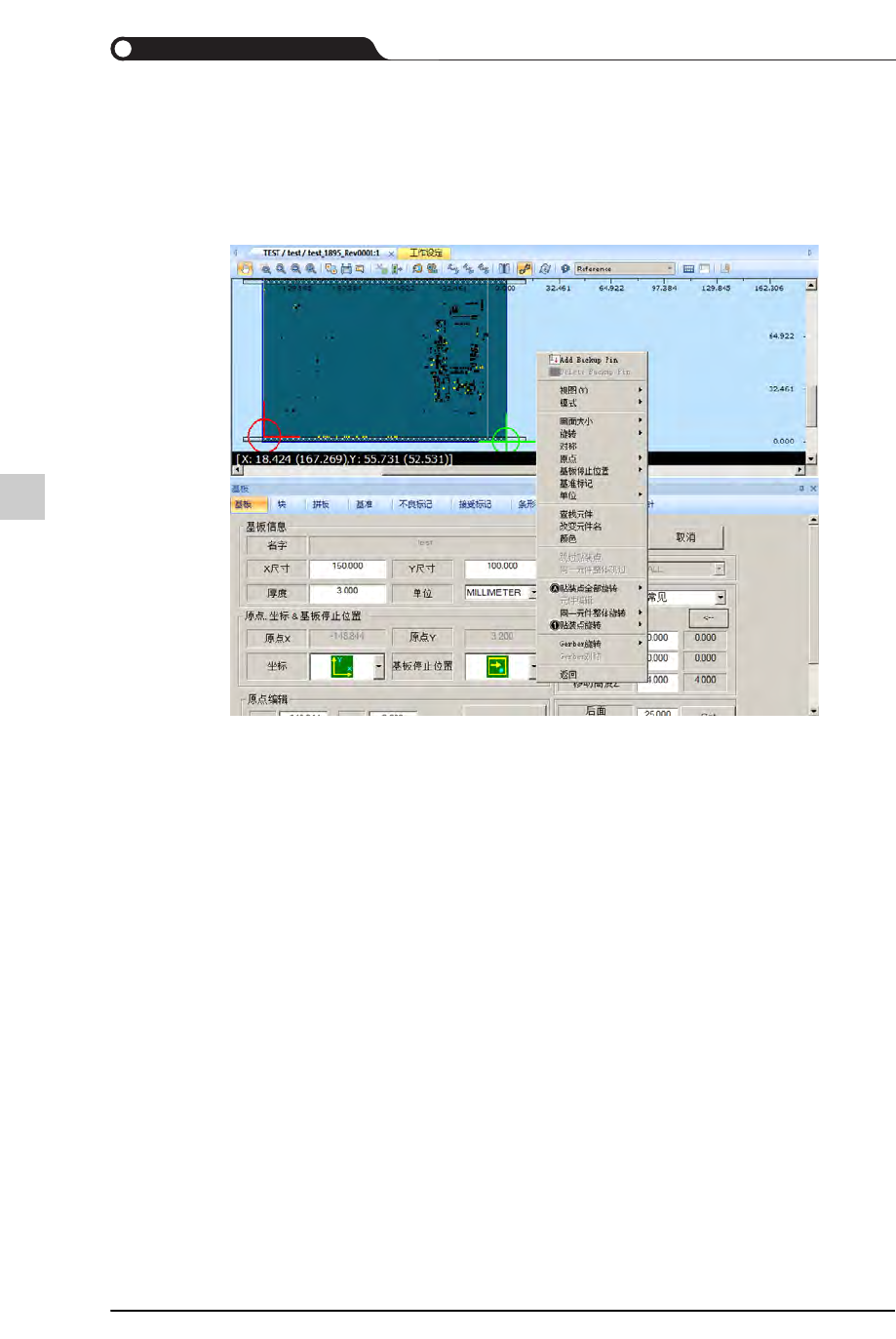 将显示目前打开的JOB文件的CAD视图。可以查看基板及元件的形状。选择