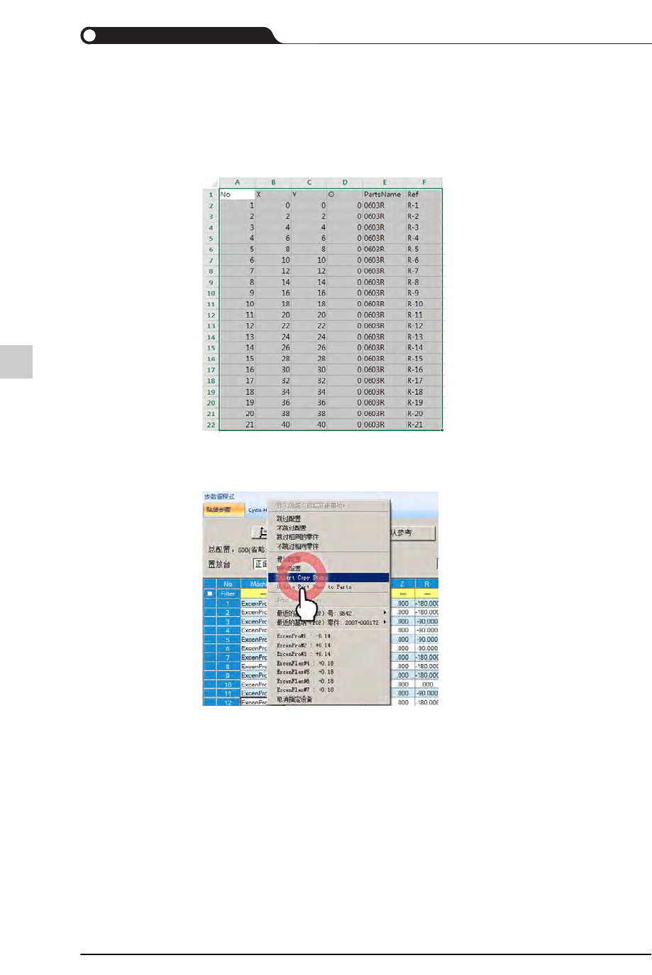 STEP1. 在其它JOB 文件或CAD文件复制贴装点信息