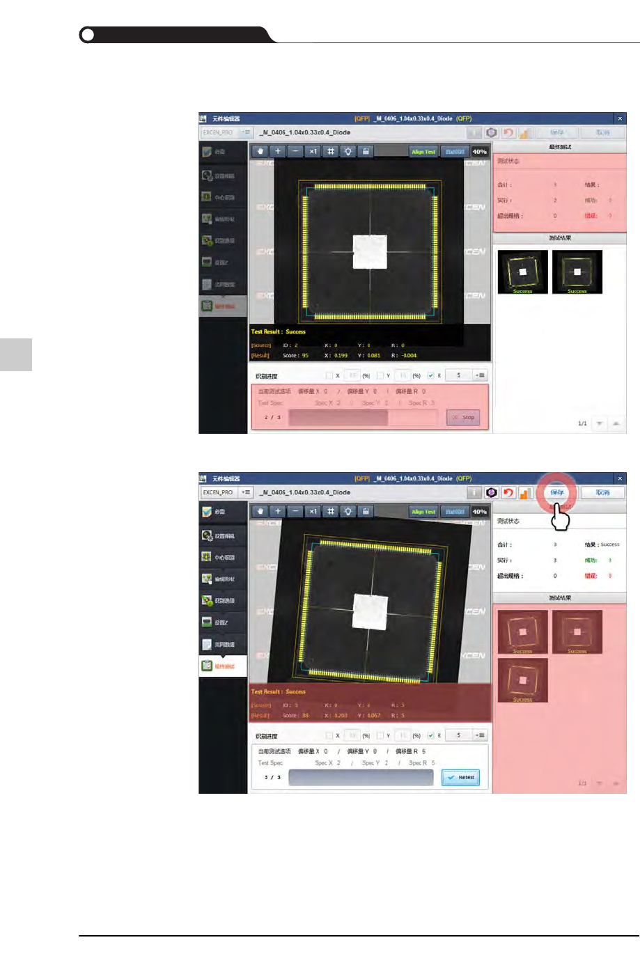 STEP20. 在“最终测试”菜单选择“识别进行过程”后,单击<测试>按钮实行元件识别