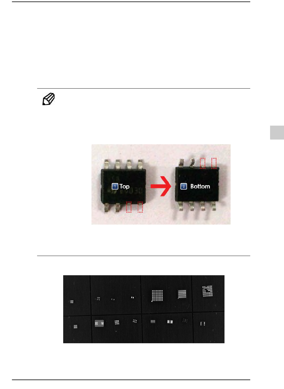 10-34 {TzYG|˅Gn {TzYG|˅Gn STEP7. 利用游标卡尺测量元件的厚度相 关参数 ( 厚度、 对准 Z 高度、 Z 深度、 销长 度 ) STEP8. 把元件放到 Part plate 上并推入 Slide Bar 把 Slide Bar 完全拉开 后 , 以元件的识别面朝上的方式把需要登记的元件 放到 Part plate 上。然后,重新推入 Slide…