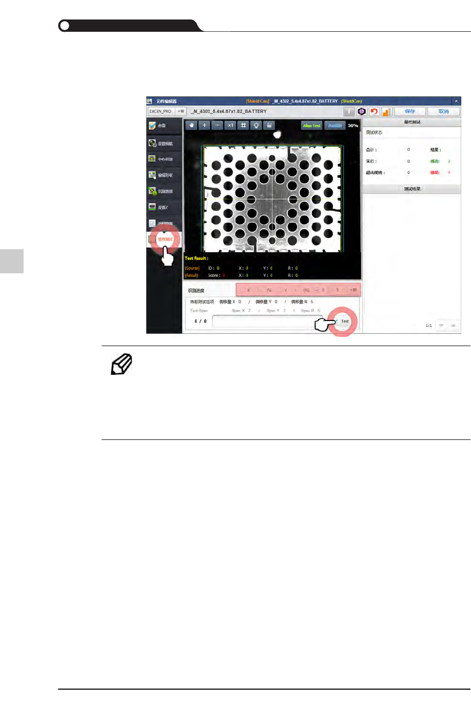 STEP25. 在“最终测试”菜单选择“识别进行过程”后,单击<测试>按钮实行元件识别