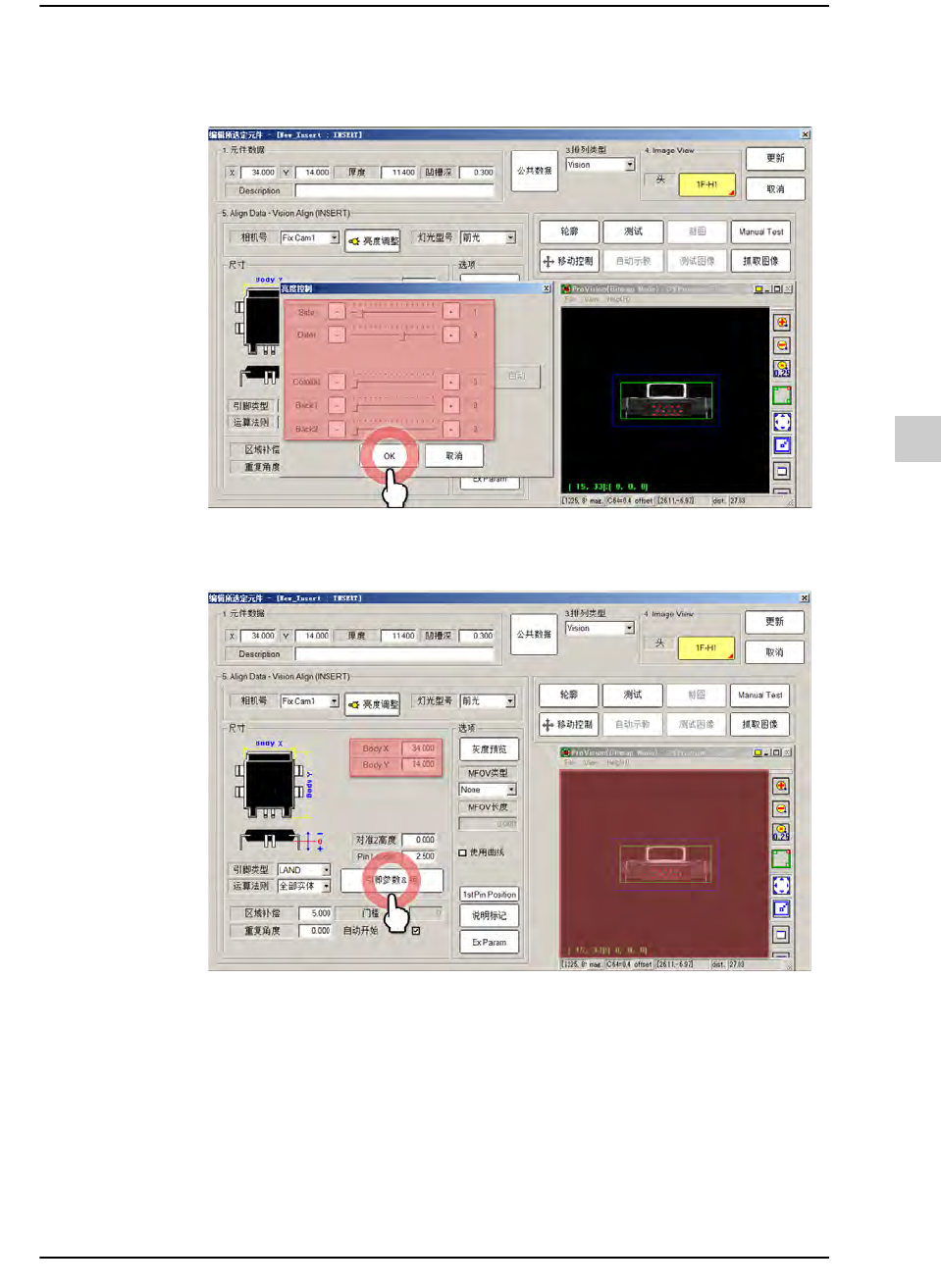 STEP14. 单击<亮度调整> 按钮进行照明调整以便让识别对象清晰地显示出来,单