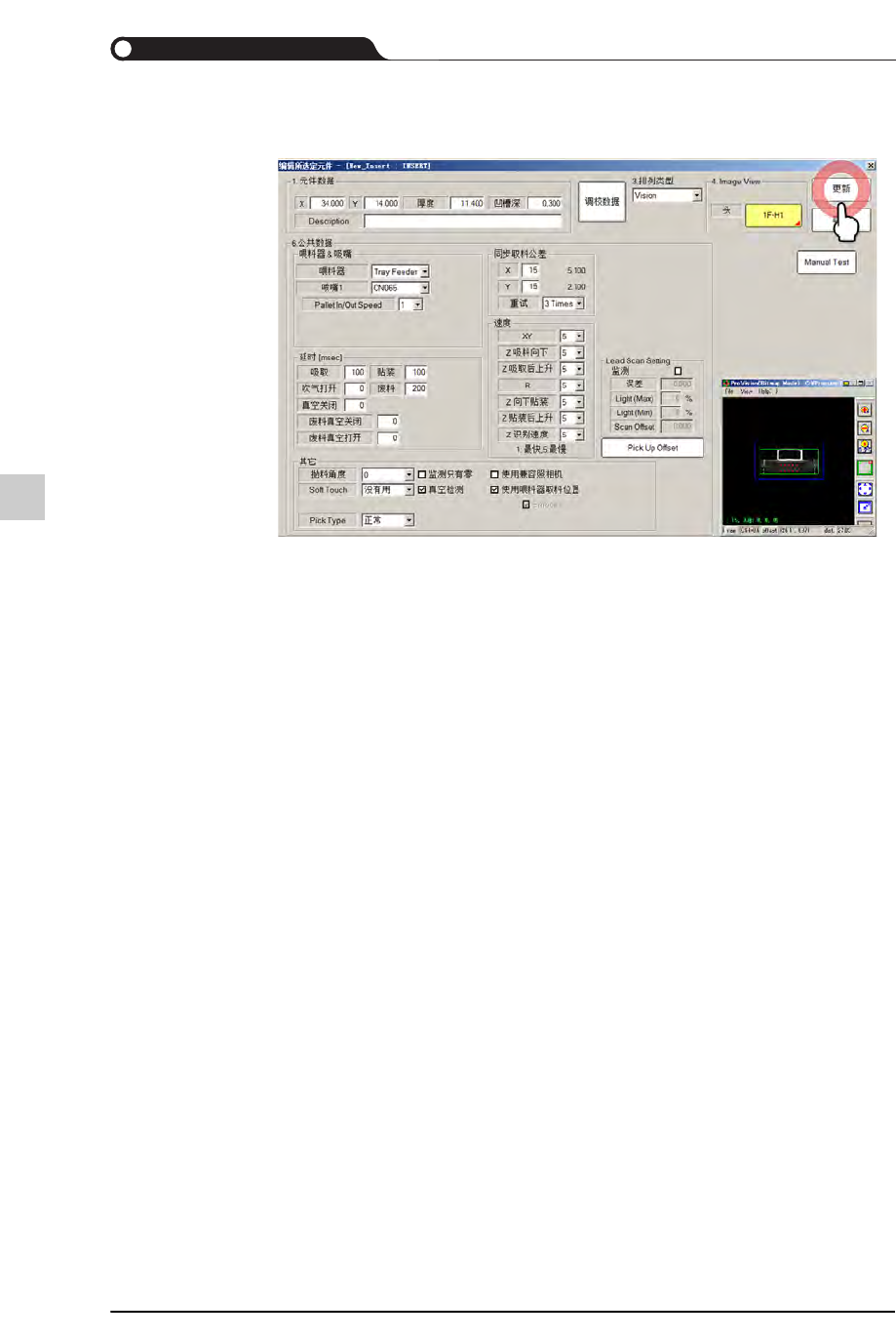 如果需要设置吸取偏移量,则一边在供料器菜单查看视觉窗一边确认实