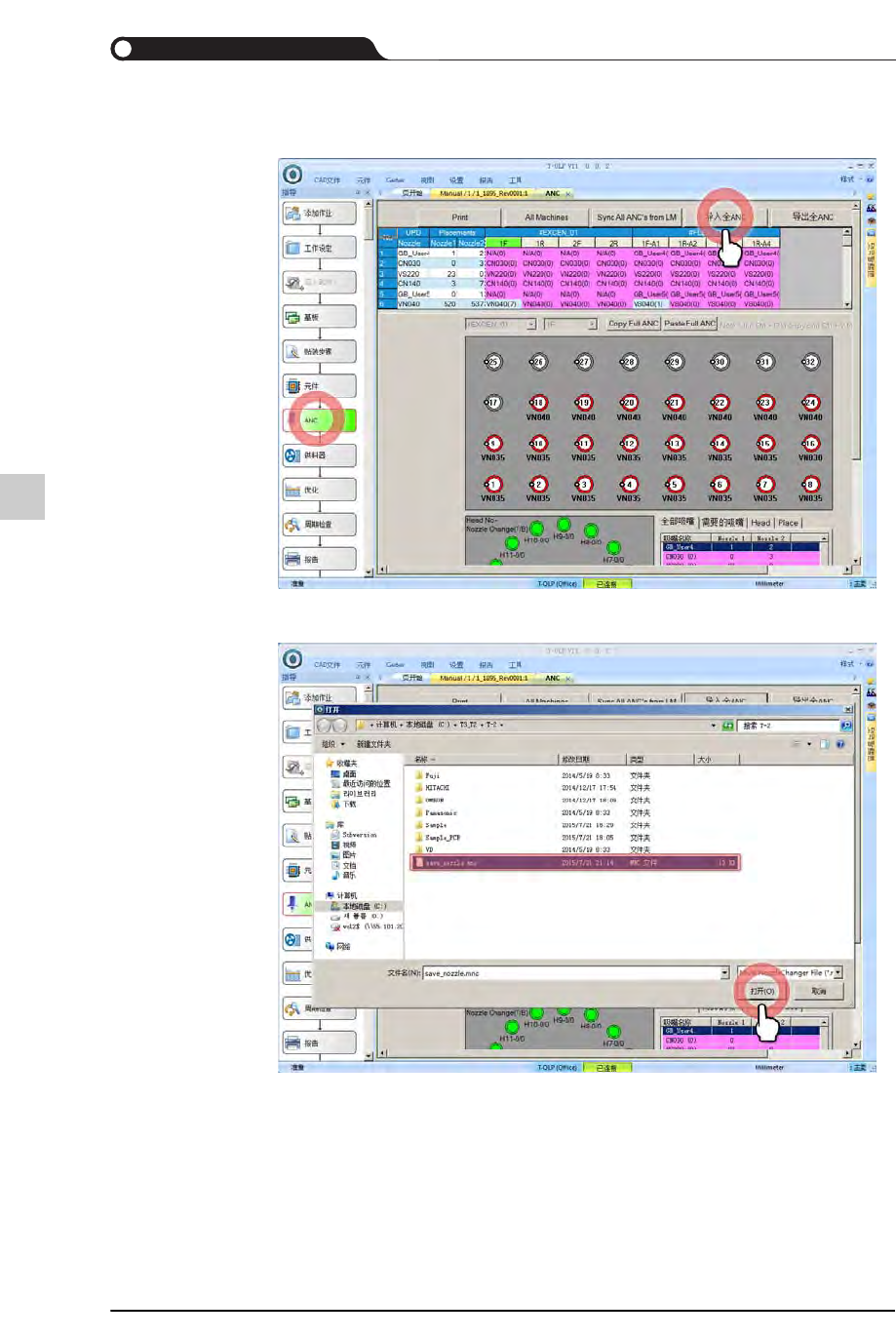 11-2 {TzYG|˅Gn {TzYG|˅Gn STEP1. 单击 <ANC> 按钮后, 单击 < 导入全 ANC> 按钮 STEP2. 选择了需要导入的 ANC 配置文件 (.mnc 文件 ) 后, 单 击 < 打开 > 按钮