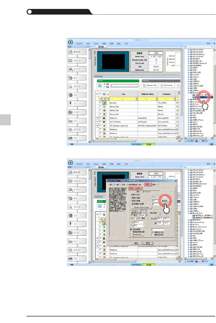 11-45 优化 PCB 程序 STEP5. 确认针对该悬臂的吸嘴更换次数 缩减效果及周期时间改善效果 吸嘴更换次数 : 4 → 2 次 周期时间 : 48.348 → 46.388 ( 缩短 2 秒 ) 11.3.4.2. 头部故障时优化 在使用设备的过程中贴装头发生故 障时, 为了使用该贴装头以外的其余贴装头进行 作业而修改 PCB 程序。 把贴装点只指定给除了发生故障的 特定头部以外的其它头部地优化的方法如下。
