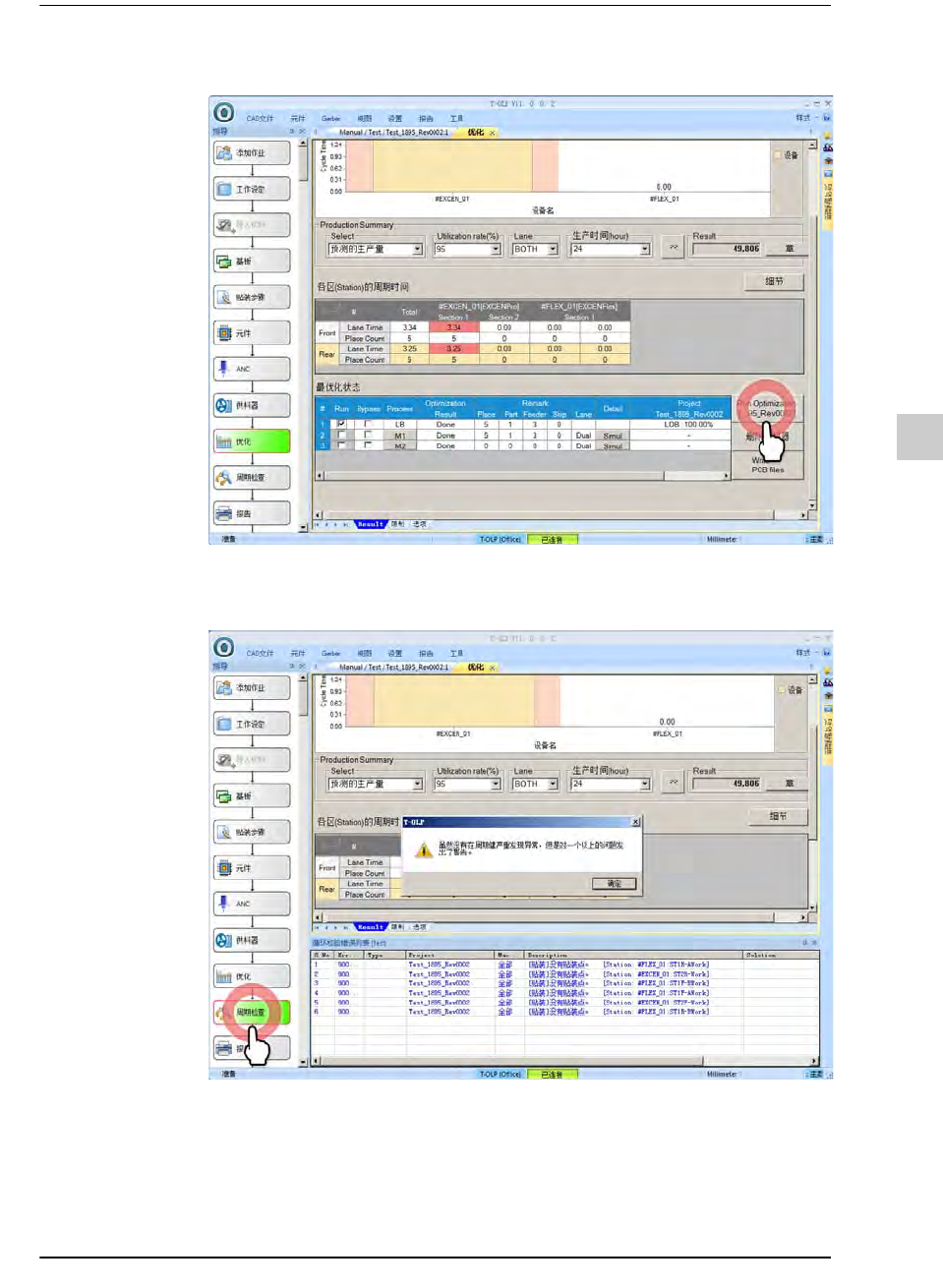 11-51 优化 PCB 程序 STEP1 1. 选择了优化选项后, 单击 <R un Optimization> 按钮 不把作业指定给发生故障的贴装 头 STEP12. 单击 < 周期检查 > 按钮