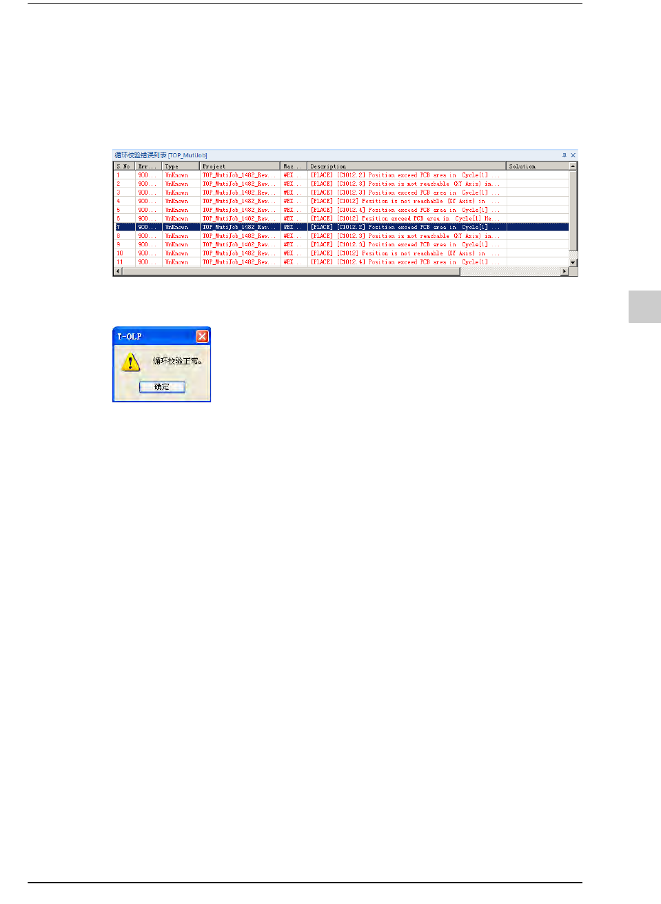 发生错误时,在消息窗口查看错误内容并修改PCB程序,解决该错误。