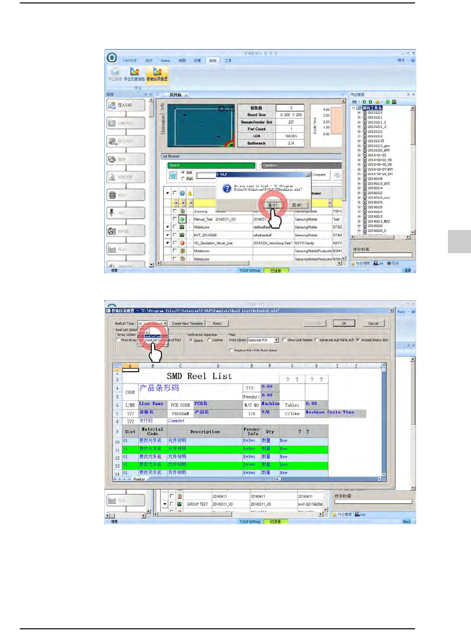 12-7 准备生产 STEP2. 在弹出式窗口单击 < 是 (Y)> 按钮。 STEP3. 在 <ReelList T ype> 组合框选择所需要 的卷轴列表样式。