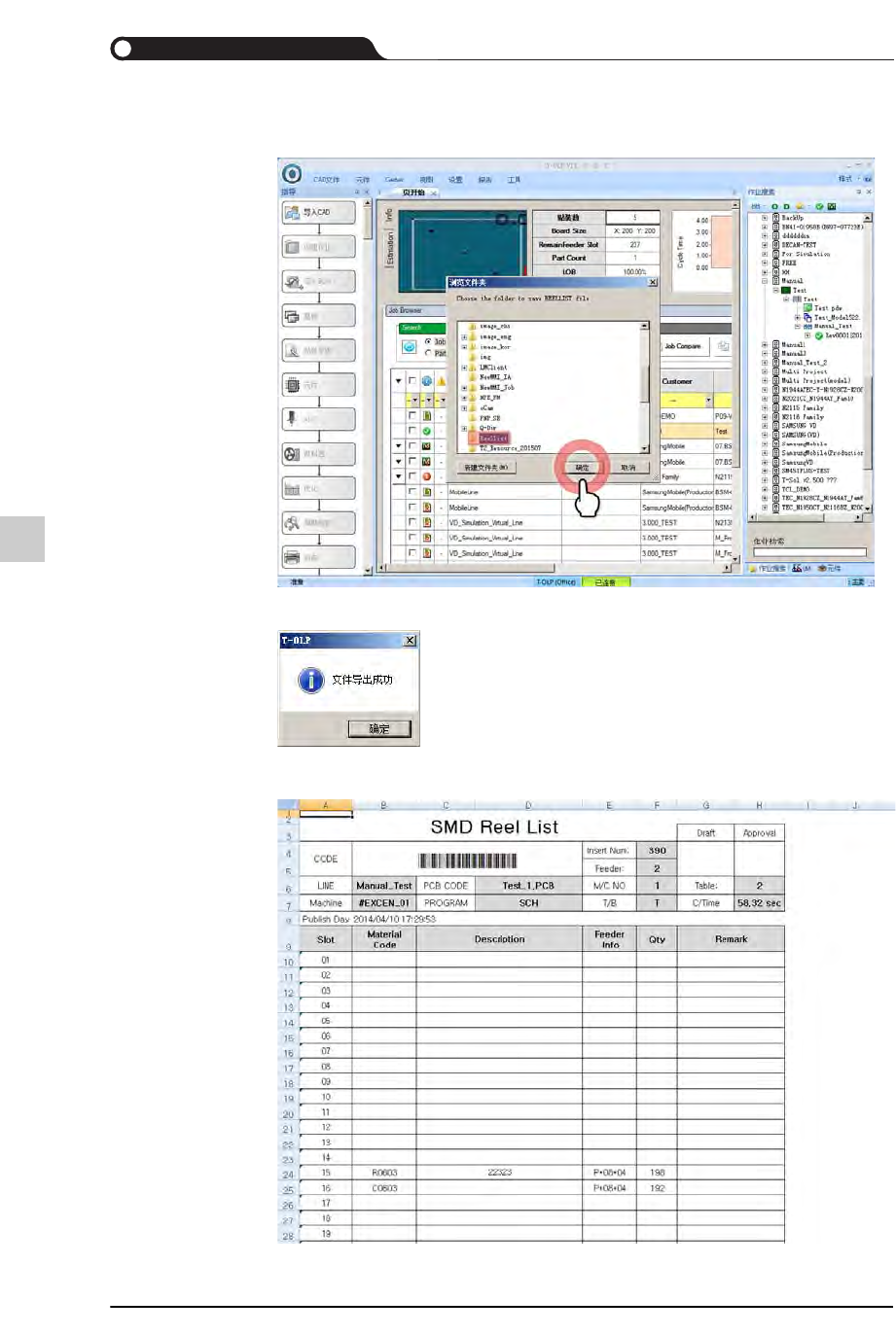 12-11 准备生产 12.2.1.3. 印刷卷轴列表 输出卷轴列表的方法如下。 STEP1. 实行 Office T -OLP 。 输入账号与密码,选择所使用的 屏幕语言 ( 中文 [zh-CN]) 后,单击 <Login> 按钮。 STEP2. 选择了确定生产的型号的 JOB 文件后单击 鼠标右键, 然后选择 “Export & Print Reel Lists” 。