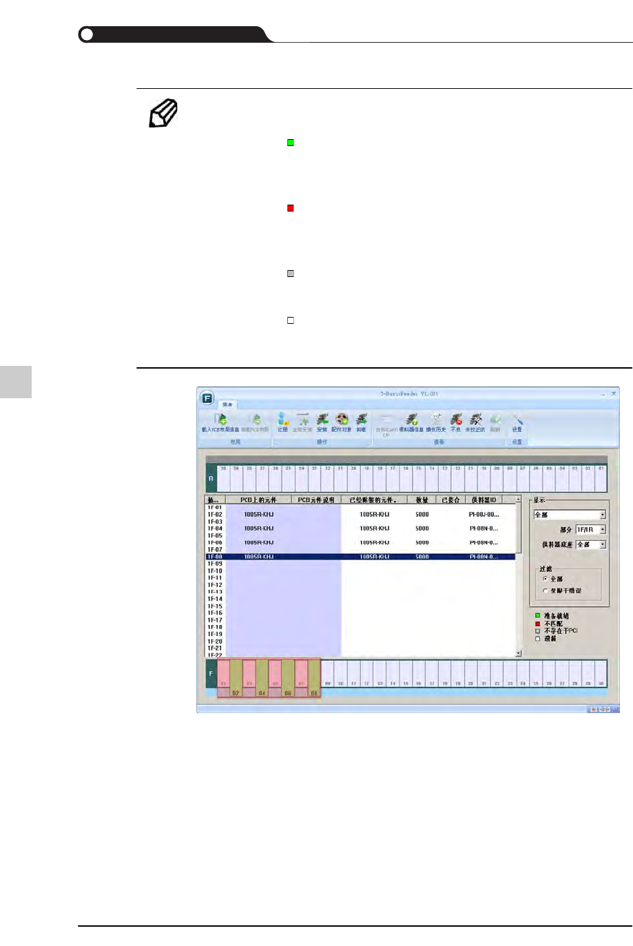 备注 提示 – 各插槽颜色的供料器配置状态