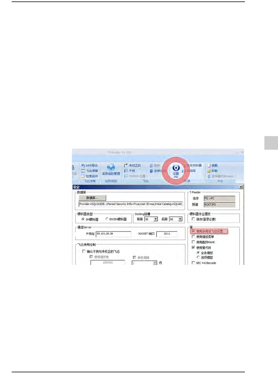 单击 < 设置 (F9)> 按钮后在 “ 设定 ” 对话框圈选了 < 使用多用途飞达设置