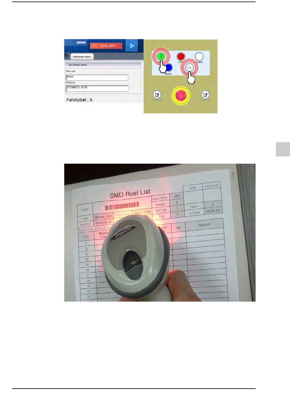 STEP1. 在设备的条形码扫描器扫描料盘列表的条形码。