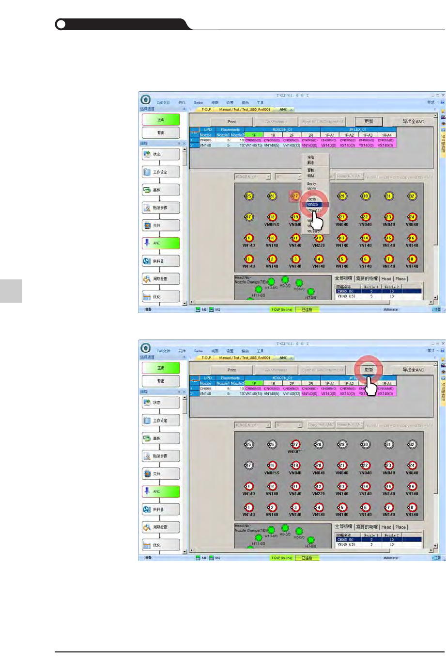 STEP3. 单击< 更新>按钮保存所更改的吸嘴配置信息。