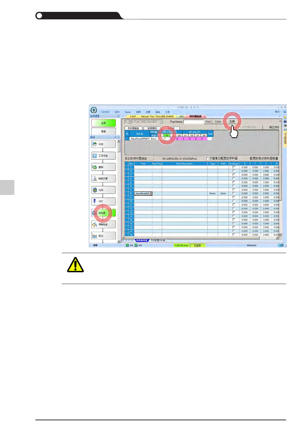 STEP2. 选择了需要变更的供料器后,修改供料器配置。