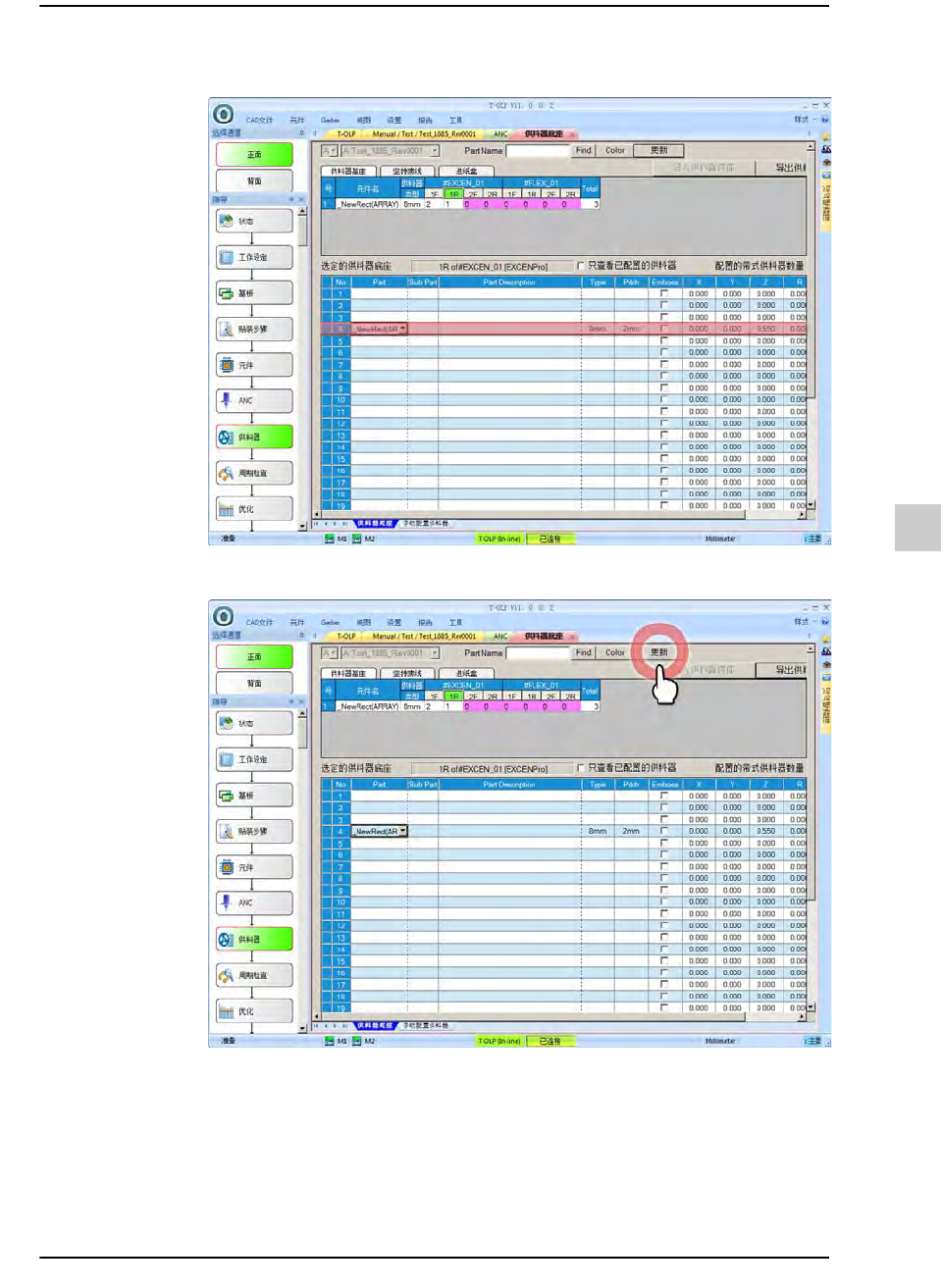 STEP3. 单击< 更新>按钮保存所更改的供料器配置信息。