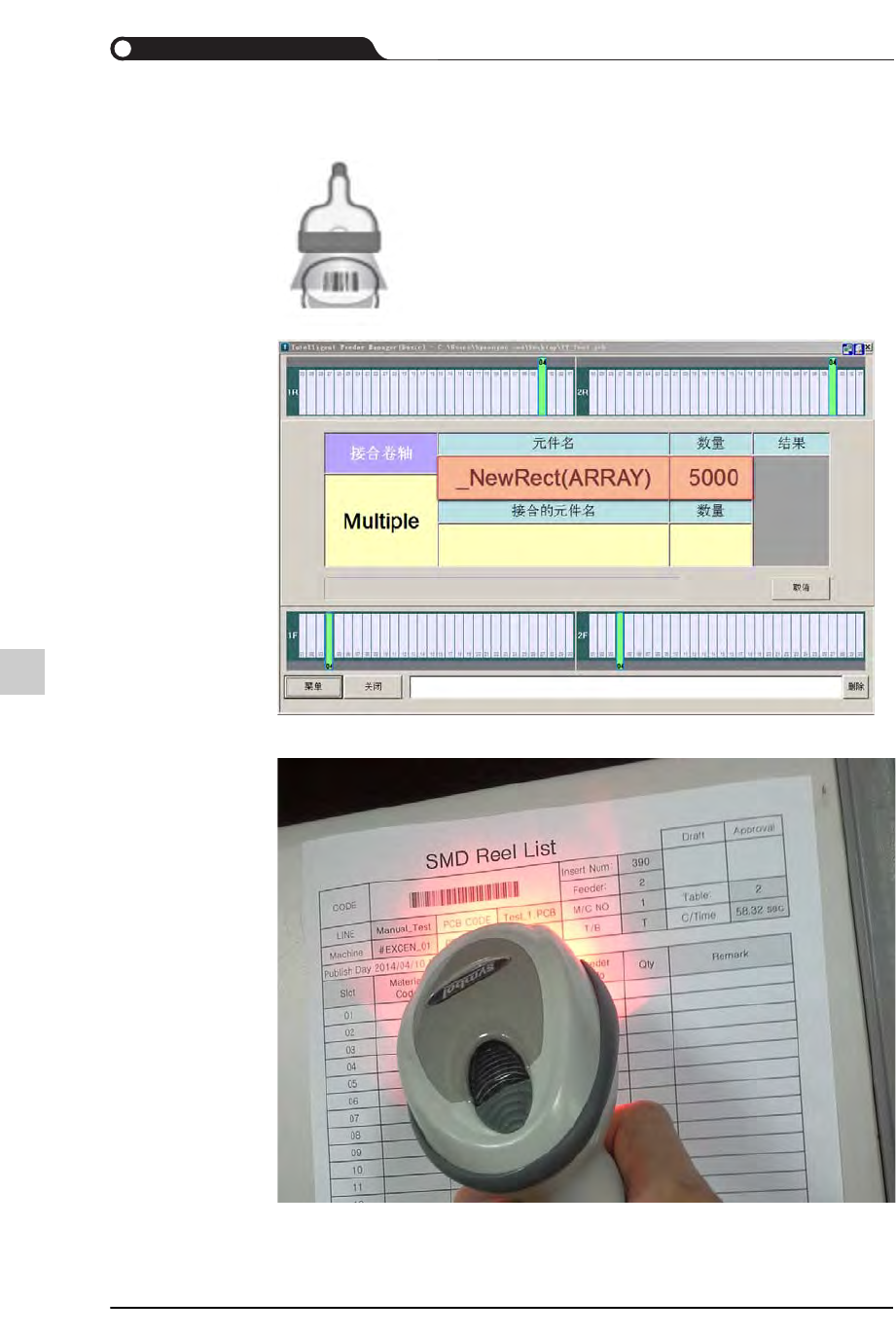 STEP3. 扫描需要连接到现有料盘的料盘(2nd 料盘)条形码。