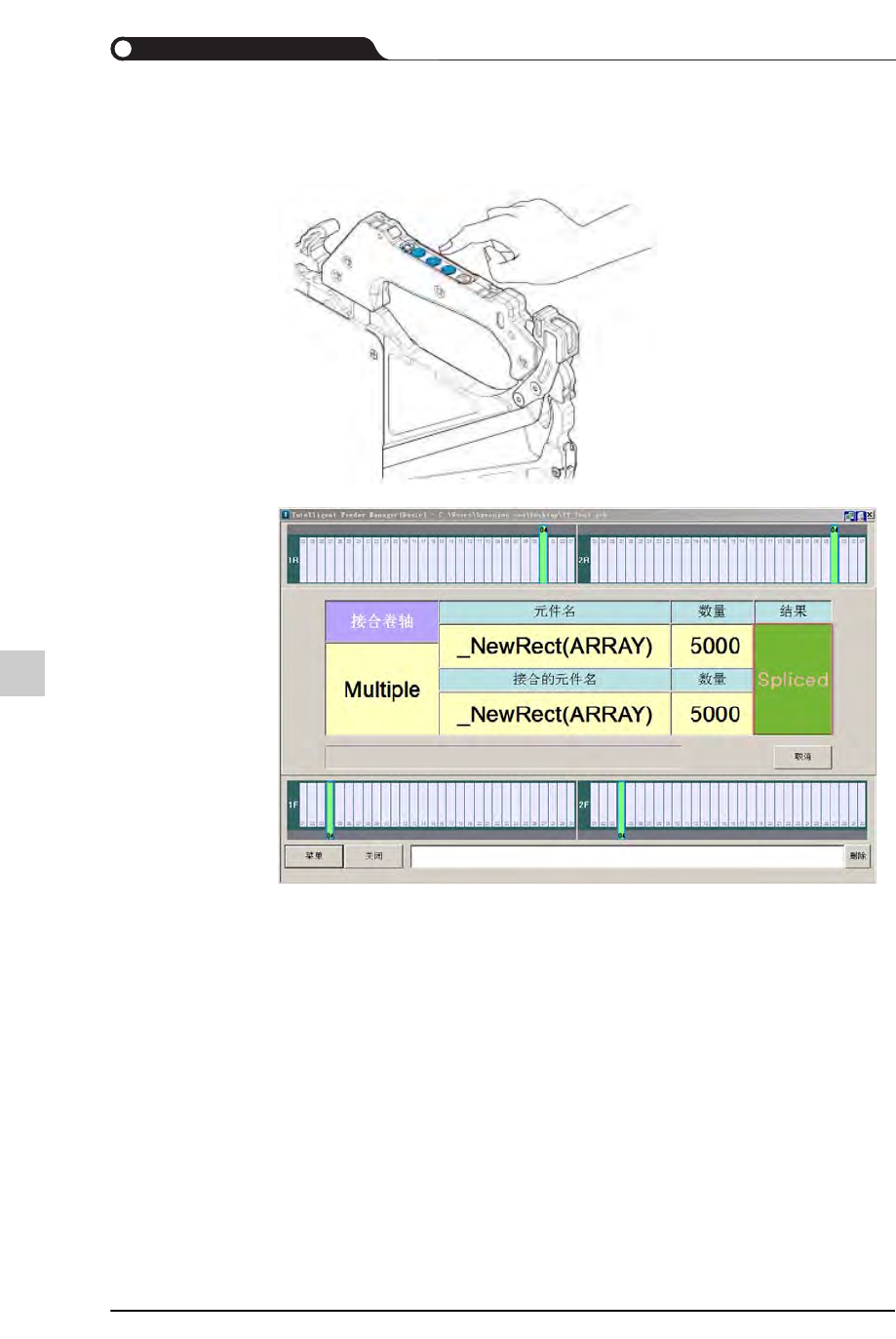 14-5 生产过程中的对应措施 STEP3. 扫描需要连接到现有料盘的料盘 (2nd 料盘 ) 条形码。 STEP4. 接料