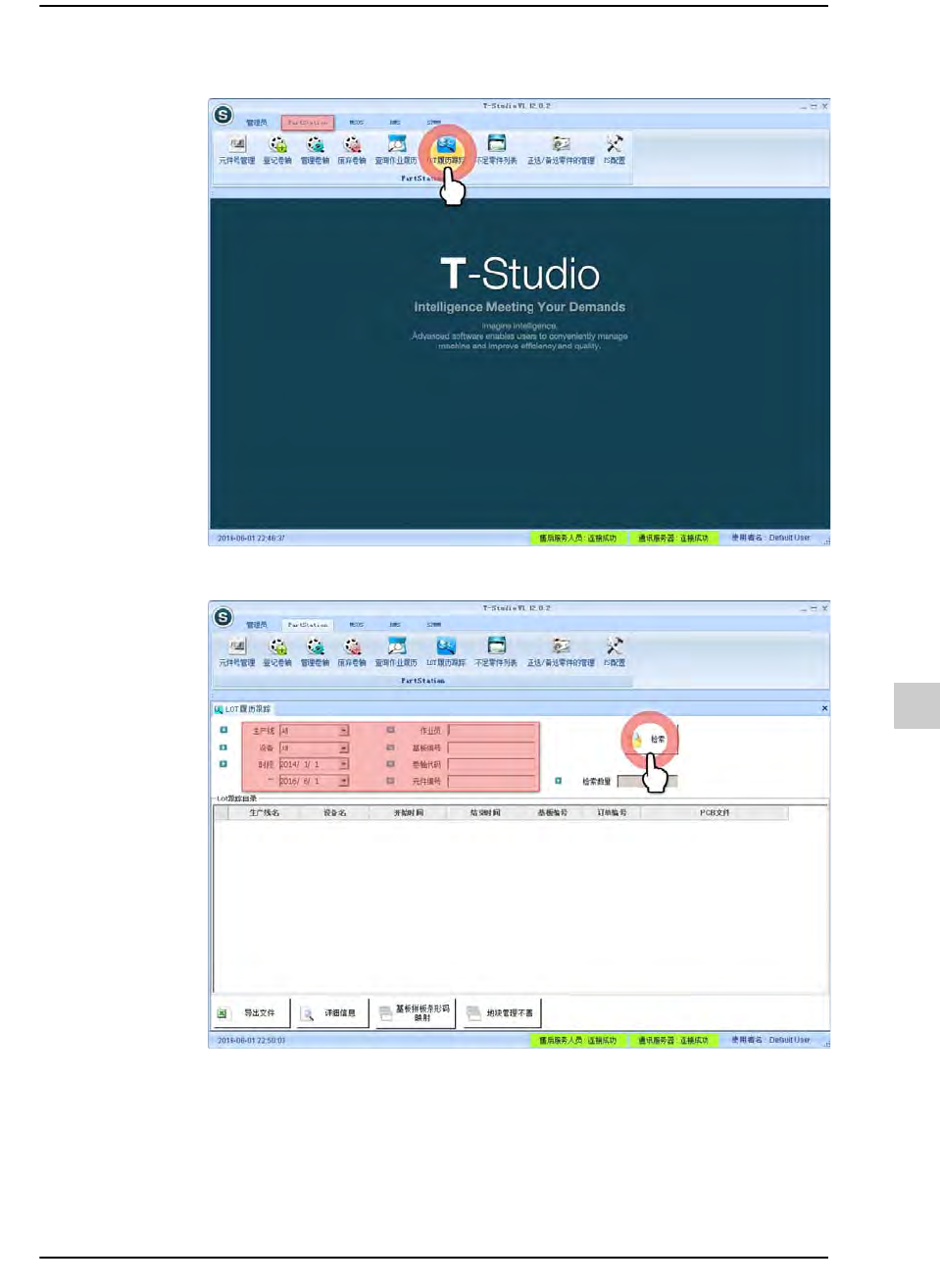 下面是在T-Studio查询生产历史的步骤。