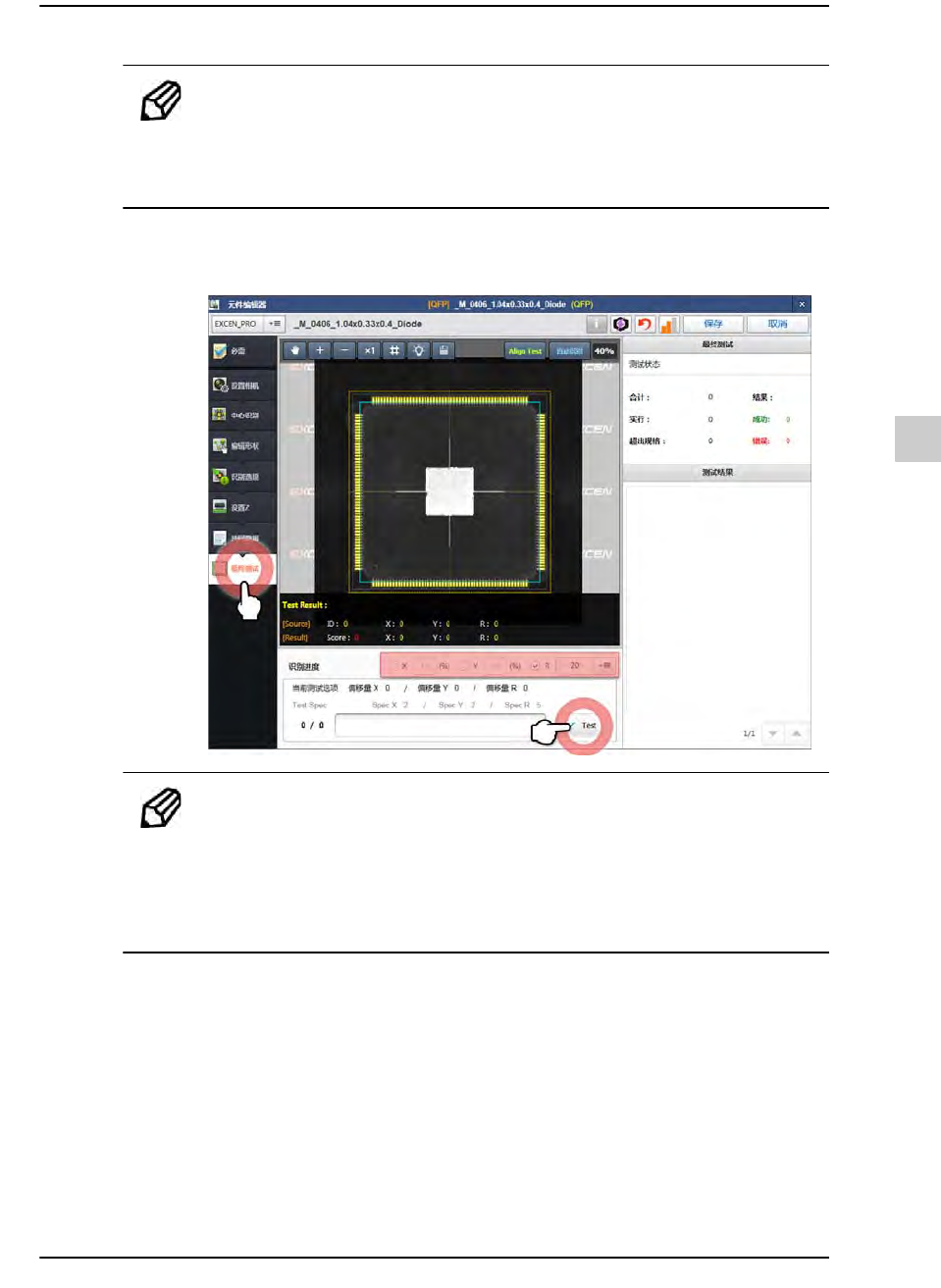 STEP20. 在“最终测试”菜单选择“识别进行过程”后,单击<测试>按钮实行元件识别