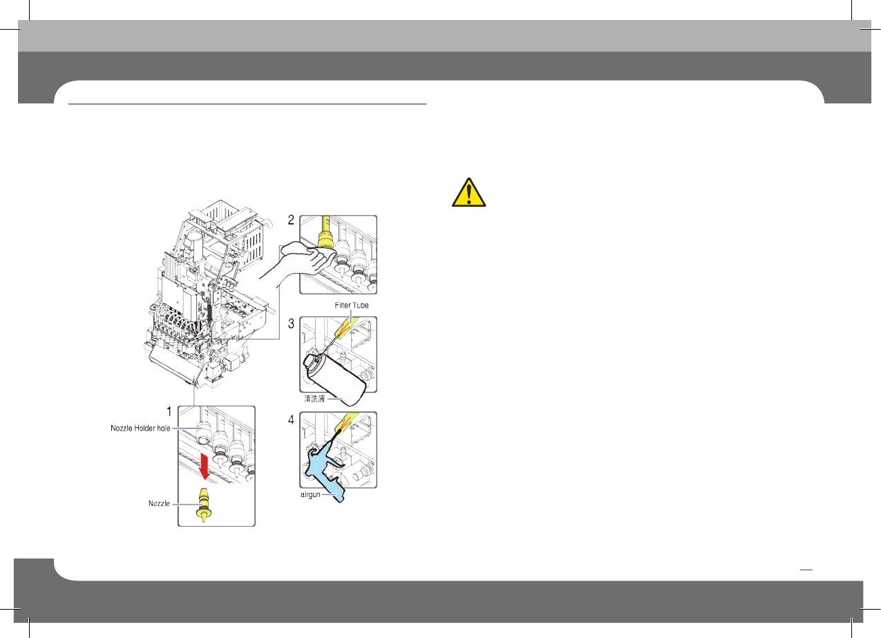 6. 先拆卸对应Head Spindle的Nozzle后用布包住Nozzle Holder Hole并在Tube中投