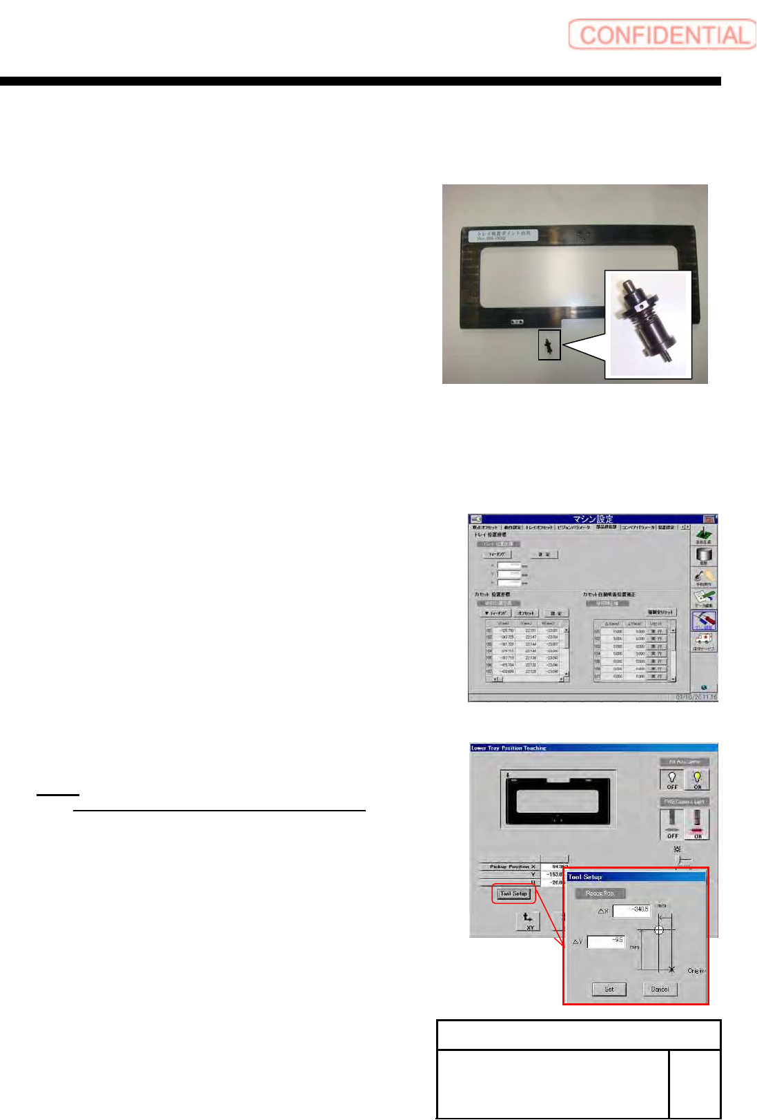 Install Tray Unit (Including machine modification) SHEET 69/73 WKGB-10104-03 Installing Tray Unit (Including machine modification) [T ray pickup position setup] [Necessary jig] ・ T ray pickup position teaching jig ・ Leng…