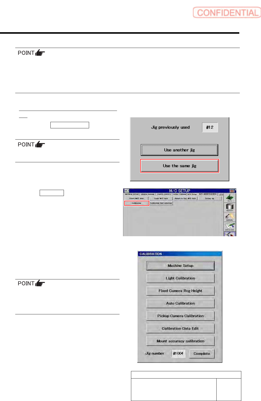 Preparation for Calibration HLGB-10105-01 Calibration Dat a Load SHEET 2/3 3 Click in an order of M/C SETUP menu M/C MAINTENANCE tab Calibration tool selection button. A sele ct screen for jig used for calibration ap…