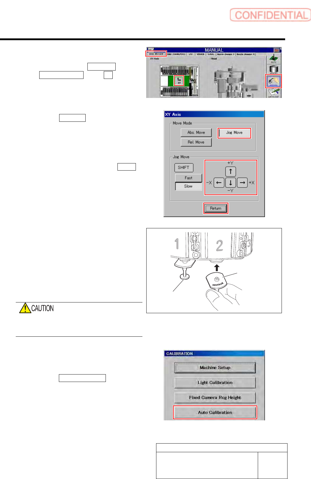 Calibration HLGB-10305-01 Auto Calibration (Recognition of Relationship be t ween the Fi xed Camera and Nozzle) SHEET 2/4 4 Move the head clear of the work area. 1. Click in an order of MAN UAL menu AXIS MOTION tab X…