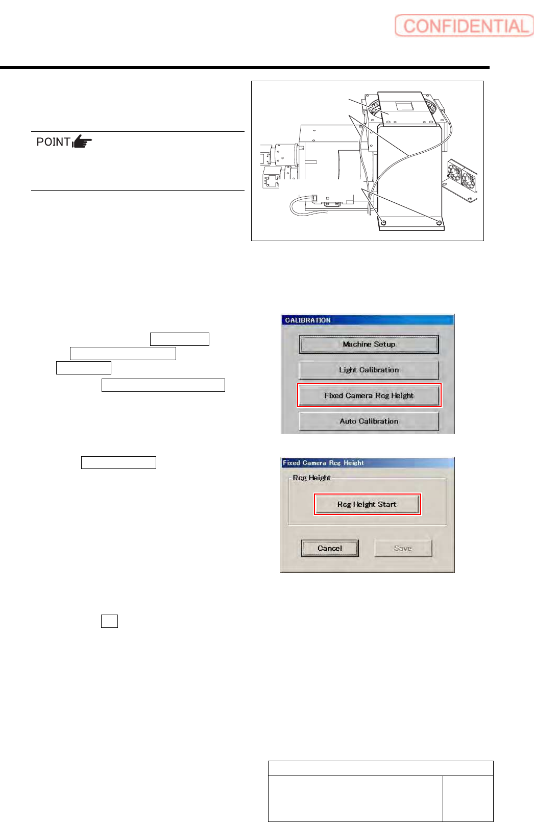 Calibration HLGB-10310-01 Fixed Camera Rcg Height C alibration SHEET 2/5 5 Secure the fixed camera jig base with cap screws (2-CP 5x20). Carry out working with care not to damage the fiber cable for parts presence/absenc…