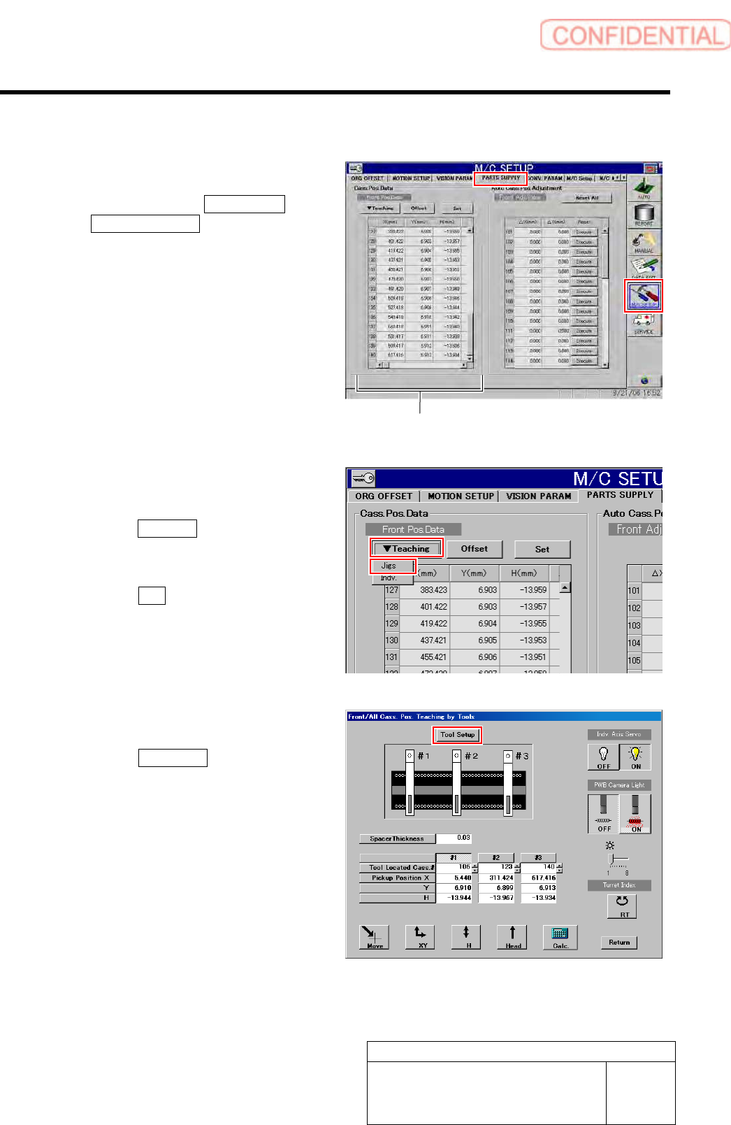 Calibration HLGB-1031 1-01 Pickup Position Setup SHEET 1/9 Pickup Position Setup Pickup position setup can be perform ed at three locations on the front cassette table (Z106, Z120, Z139) and at three locations on the rea…