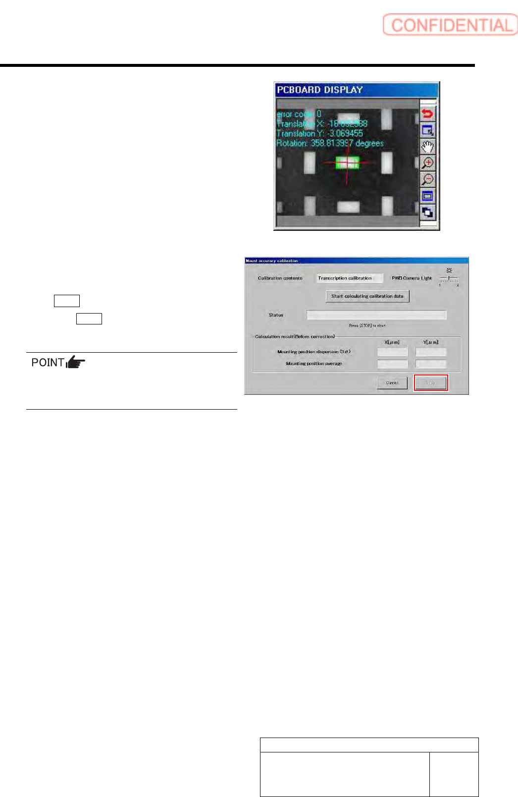 Calibration HLGB-10313-01 Mount Accuracy Calibration SHEET 11 / 11 W ait until the parts recognition by the PWB camera ends. 7 Check the displayed result and, if the correction value needs to be applied, click the Apply …
