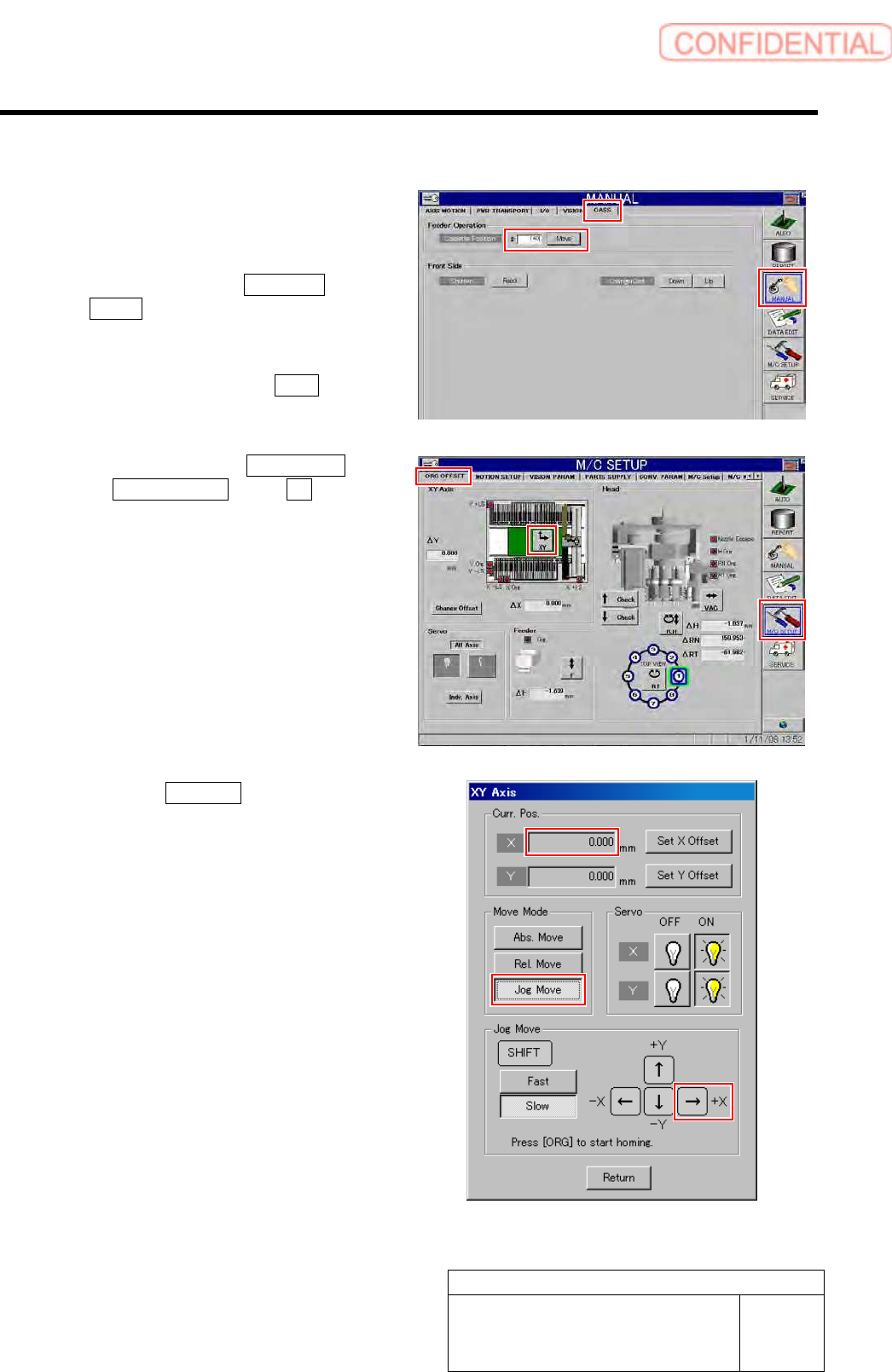 Calibration HLGB-10314-01 XY A xis Sof tware Limit Setup SHEET 5/1 1 3 Check X coordinate of the sof tware limit sensor in X axis positive direction. 1. Press the [ORG] butt on on the operation pa nel to perform orig in …